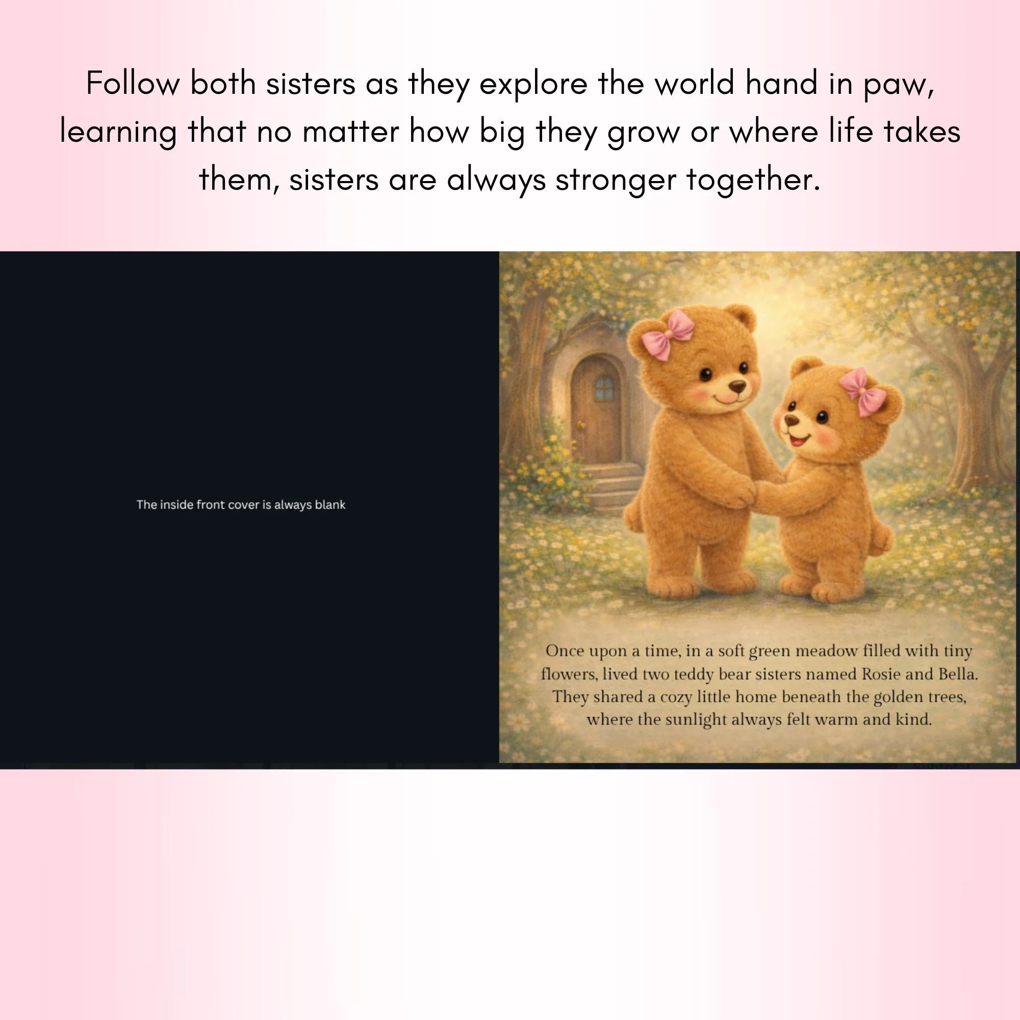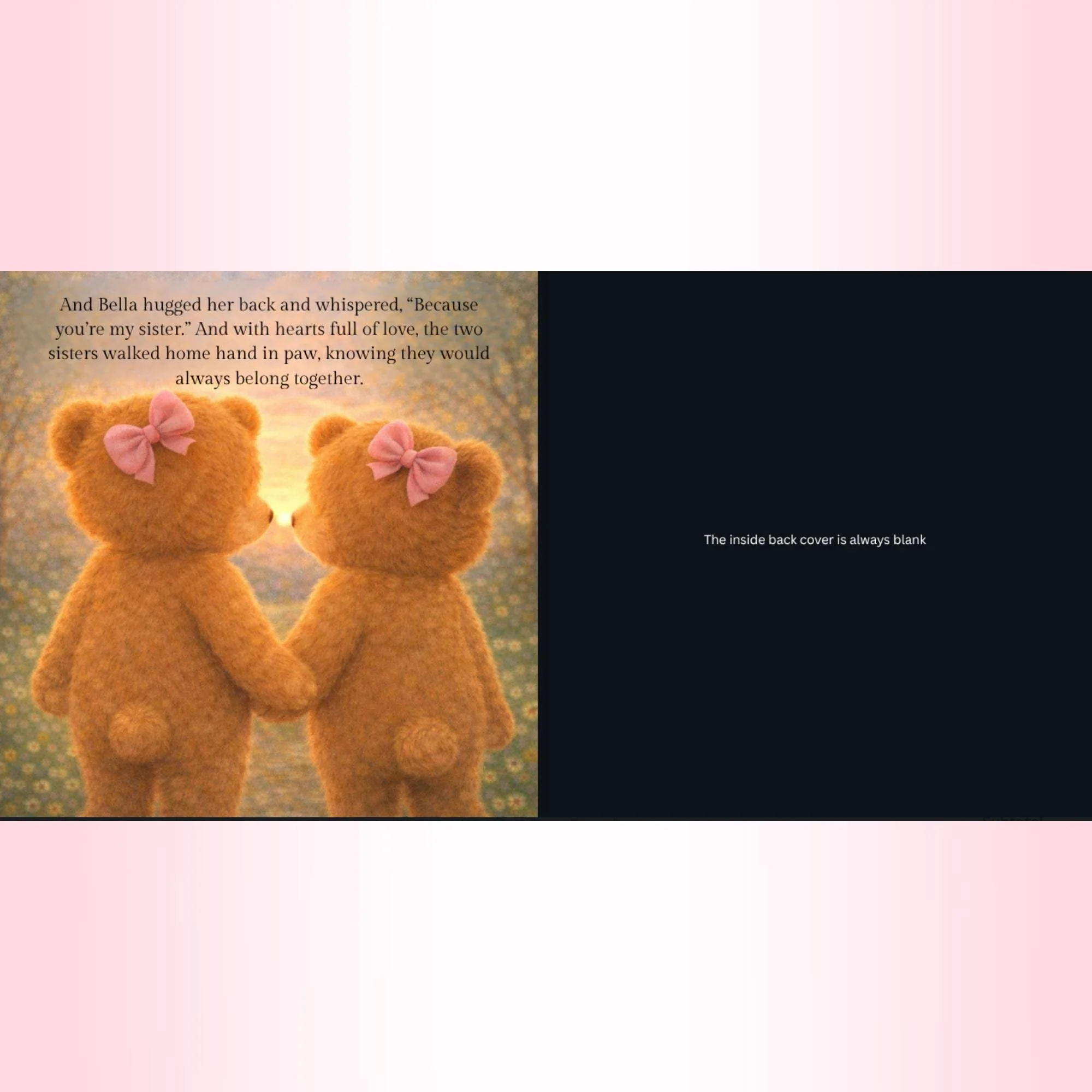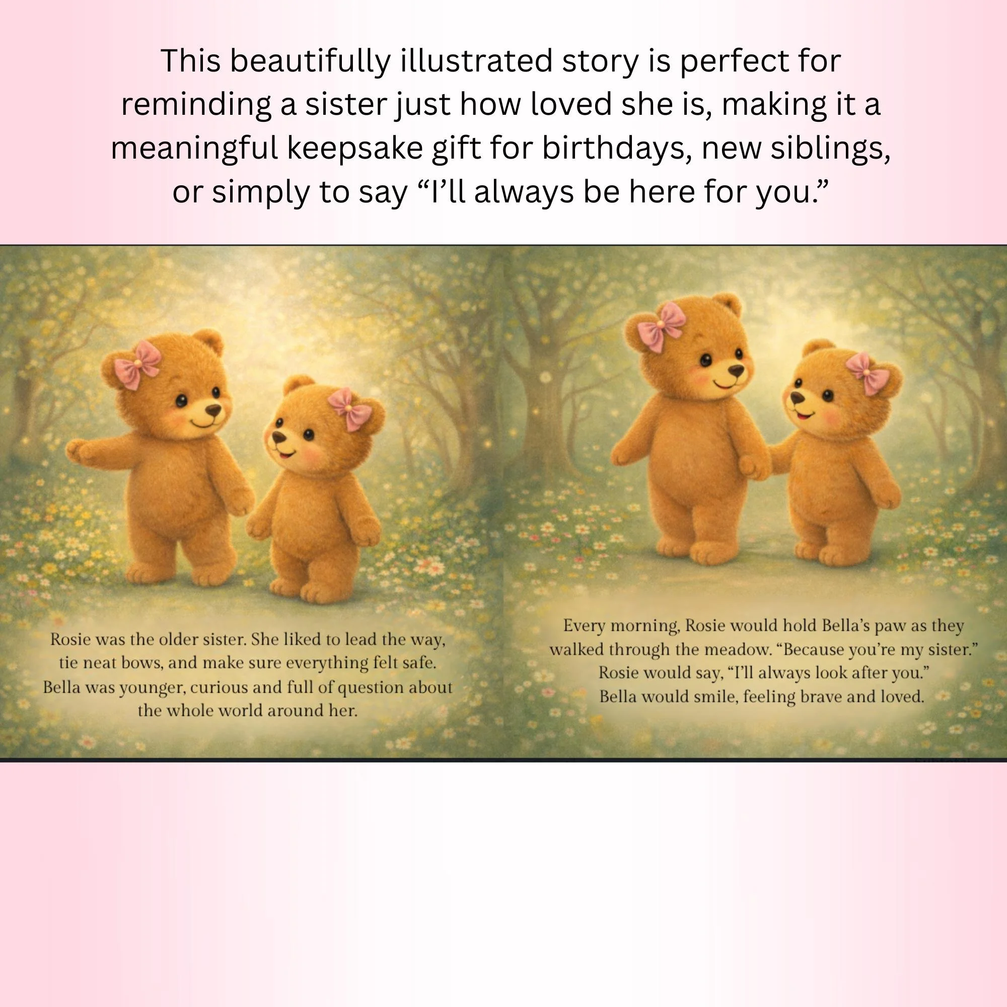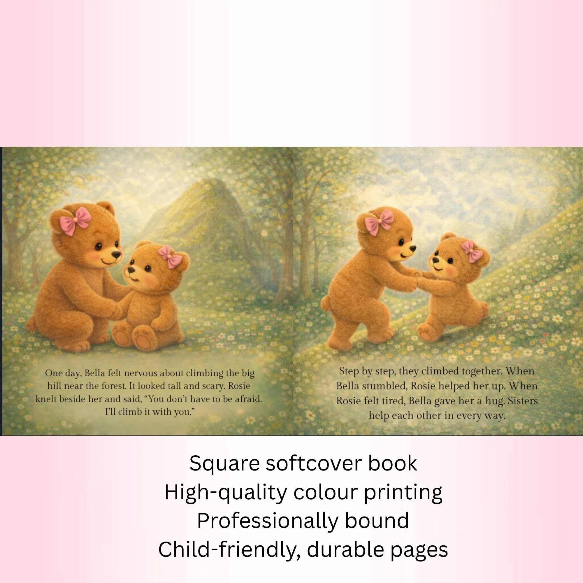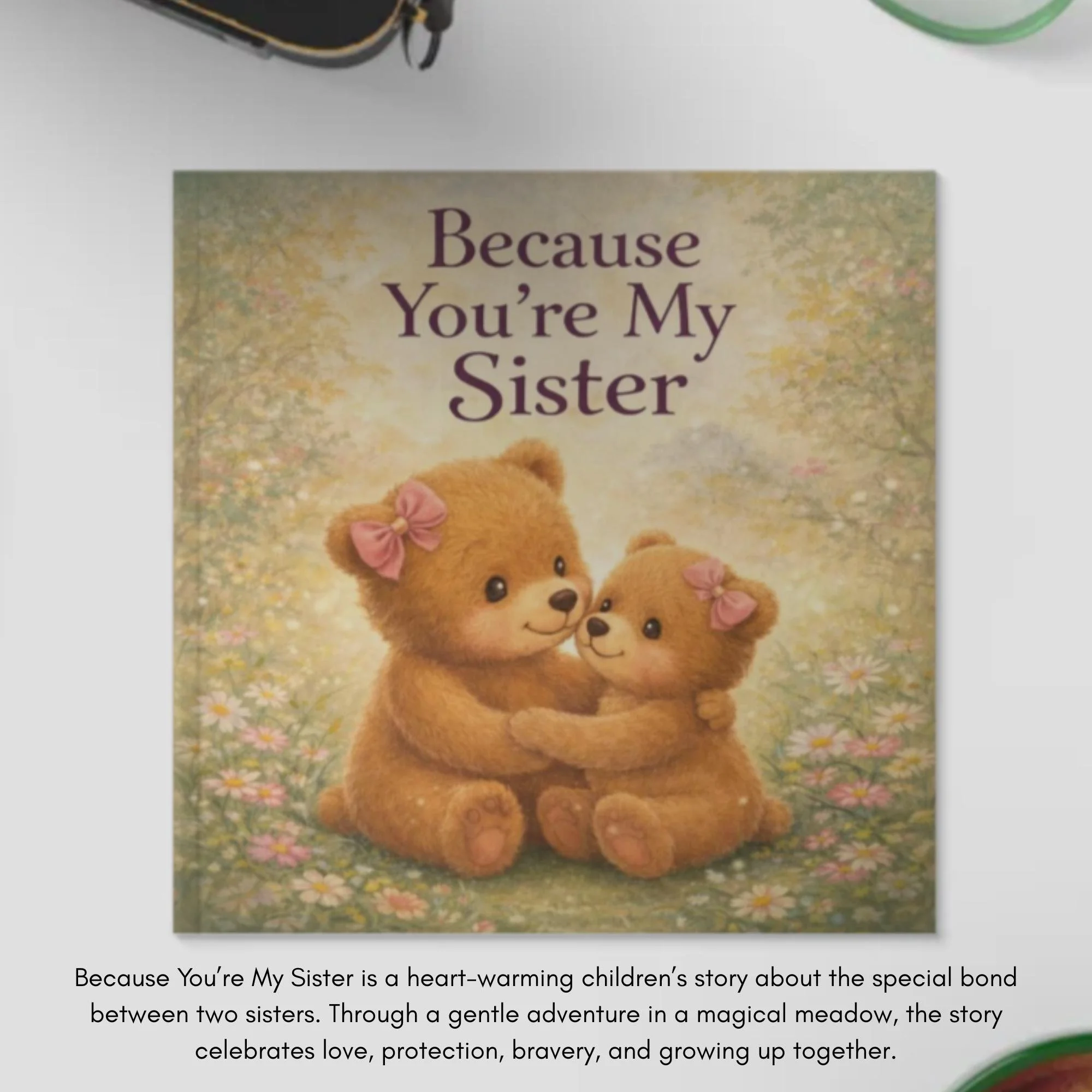 This personalised sister book is a heart-warming children’s story that celebrates the special bond between sisters. Because You’re My Sister follows two teddy bear sisters as they explore, grow, and learn that love, comfort, and support are always stronger together.