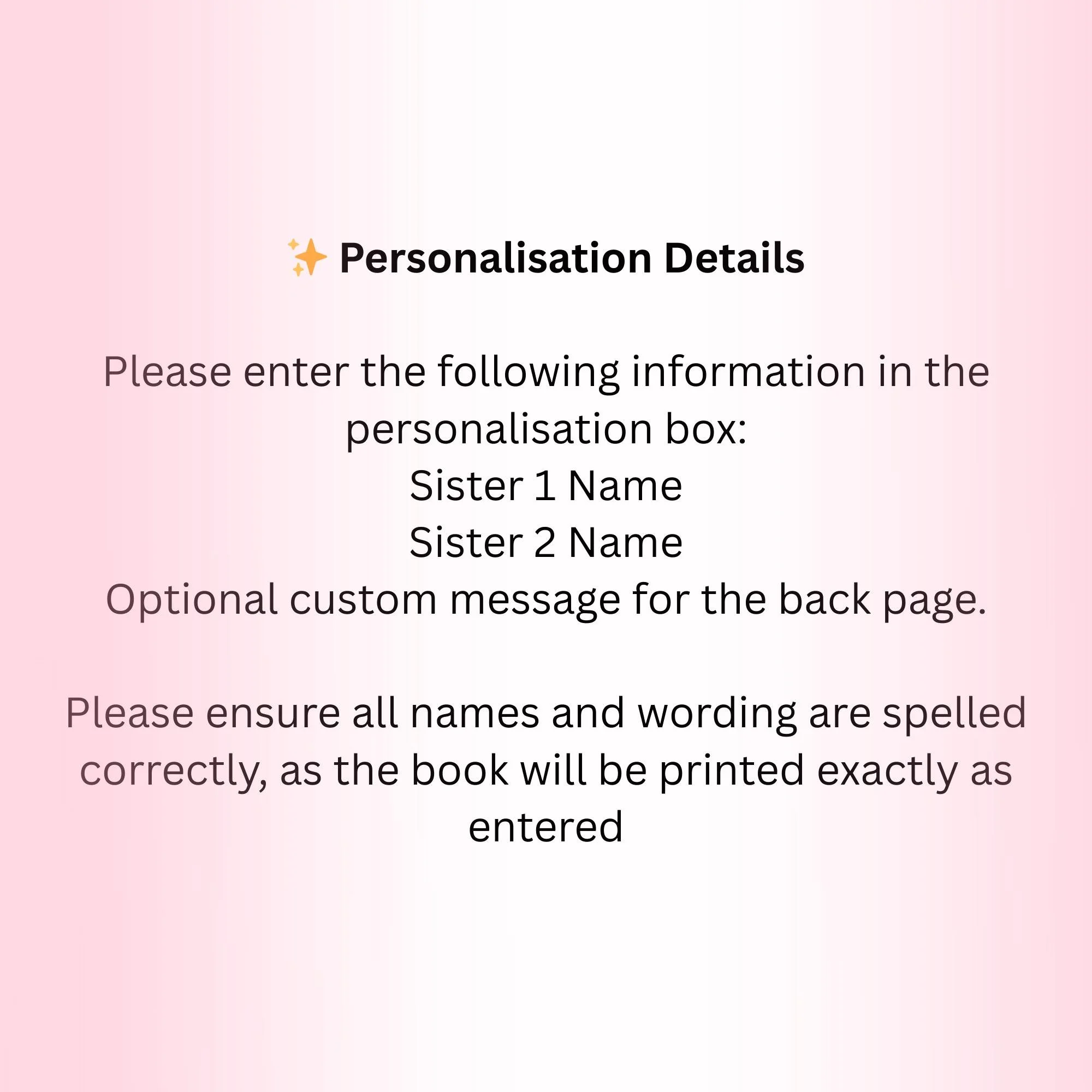 Perfect as a sister gift, big sister little sister keepsake, or personalised children’s book, this story is designed to be treasured for years. With soft illustrations and gentle storytelling, it’s ideal for bedtime reading and meaningful gift moments.
