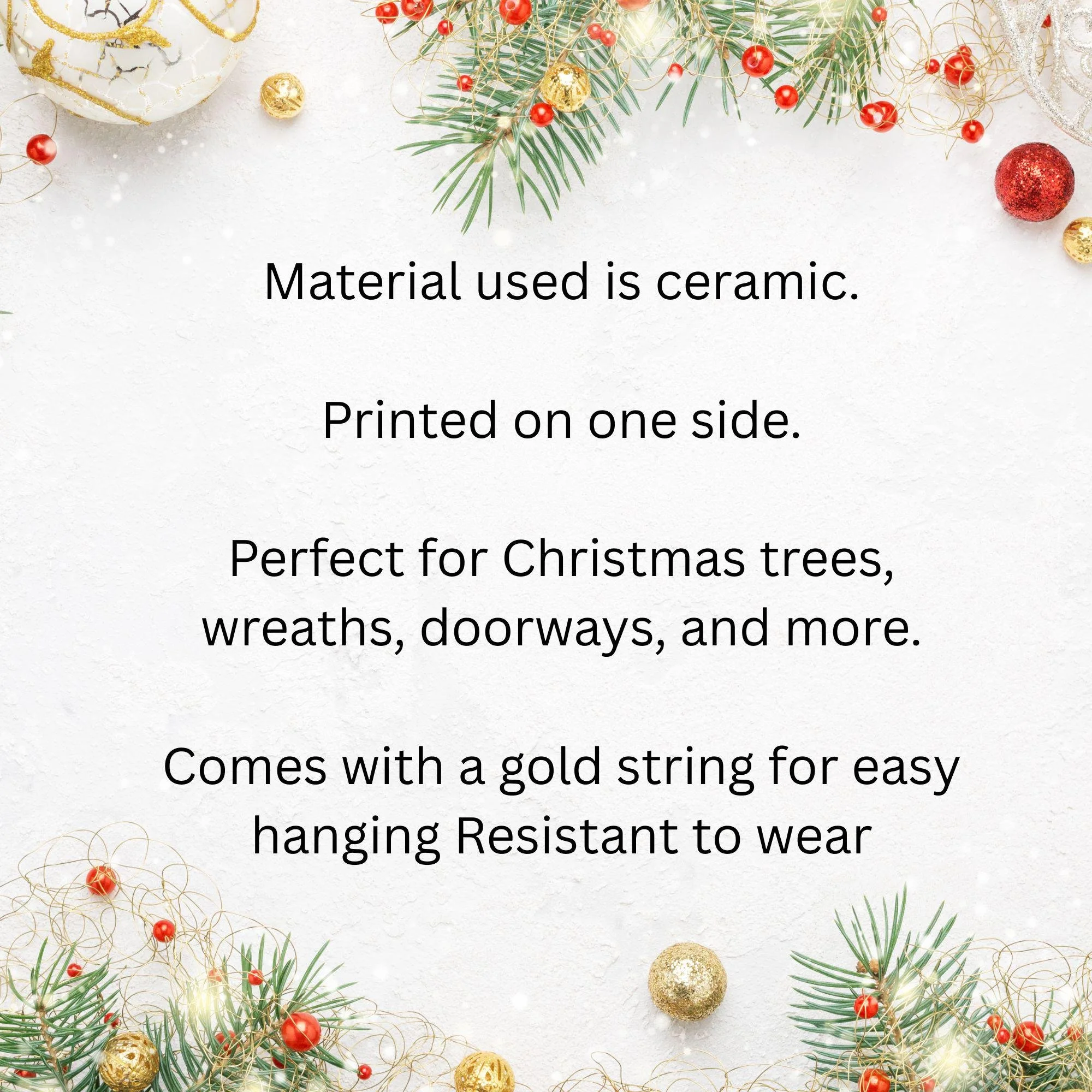Premium ceramic ornament with gold hanging string